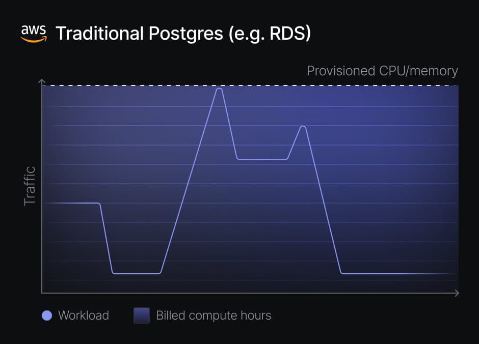 • Neon is serverless Postgres. Instead of provisioning a fixed CPU/memory, you specify an autoscaling range.
